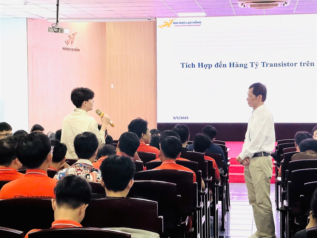 Nhằm trang bị cho sinh viên những thông tin và kiến thức tổng quan về ứng dụng Vi mạch trong  đời sống, nhu cầu tuyển dụng nhân lực vi mạch tại Việt Nam. Khoa Cơ điện - Điện tử đã tổ chức buổi hội thảo "Tổng quan về lĩnh vực điện tử vi mạch" diễn giả là thầy Thạc sỹ Nguyễn Viết Tuấn - Chuyên gia với 25 năm kinh nghiệm nghiên cứu và làm việc trong lĩnh vực thiết kế vi mạch.