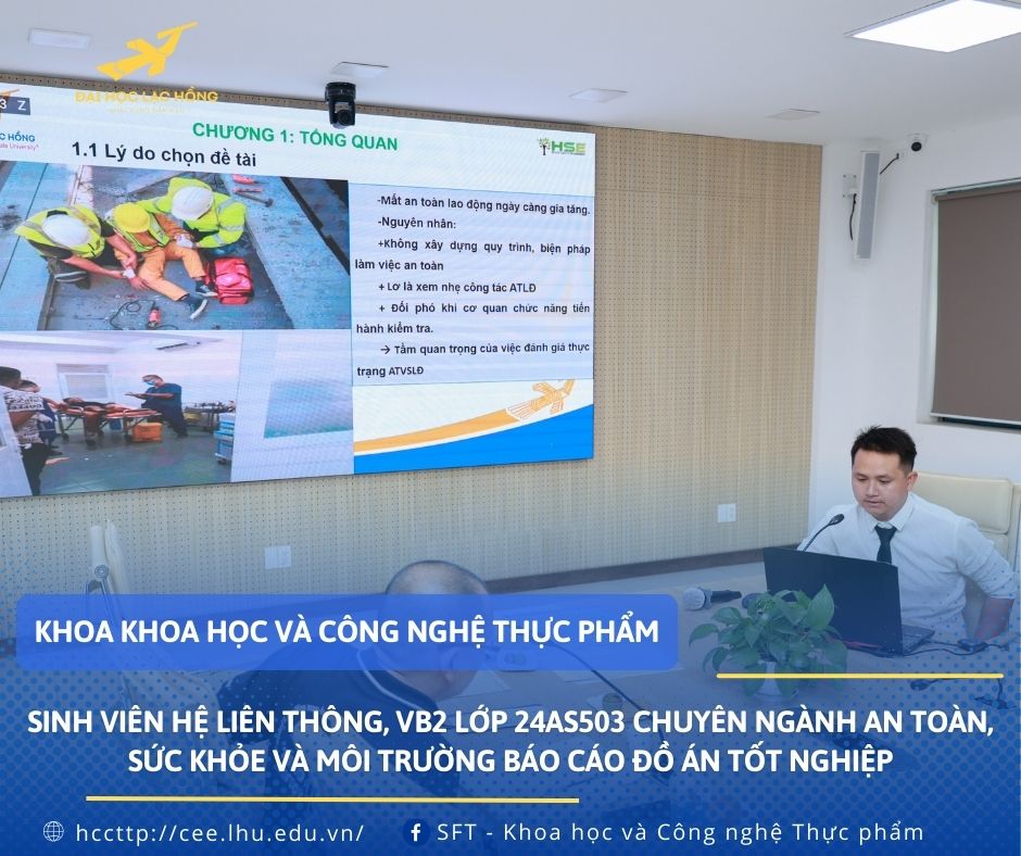 Khoa Khoa học và Công nghệ thực phẩm tổ chức báo cáo đồ án tốt nghiệp cho sinh viên lớp 24AS503, chuyên ngành An toàn, Sức khỏe và Môi trường