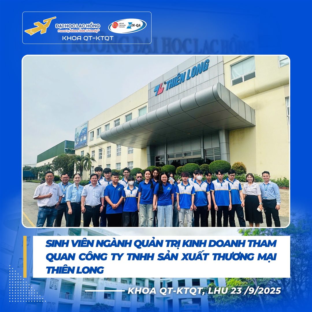 Ngày 23 tháng 9 năm 2025 – Khoa Quản trị - Kinh tế Quốc tế, Trường Đại học Lạc Hồng đã tổ chức chuyến tham quan thực tế đầy ý nghĩa tại Công ty TNHH Sản xuất Thương mại Thiên Long Long Thành cho sinh viên năm 2 ngành Quản trị Kinh doanh (QTKD). Chuyến đi mang đến cơ hội quý báu để sinh viên kết nối lý thuyết với thực tiễn, khơi dậy động lực học tập và định hướng nghề nghiệp rõ nét.