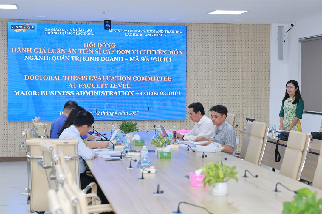 Vào ngày 03/09/2025, tại phòng họp Cơ sở 1 của Trường Đại học Lạc Hồng, Khoa Sau đại học đã tổ chức Hội đồng đánh giá luận án tiến sĩ cấp đơn vị chuyên môn ngành Quản trị Kinh doanh cho nghiên cứu sinh Lê Việt Anh.