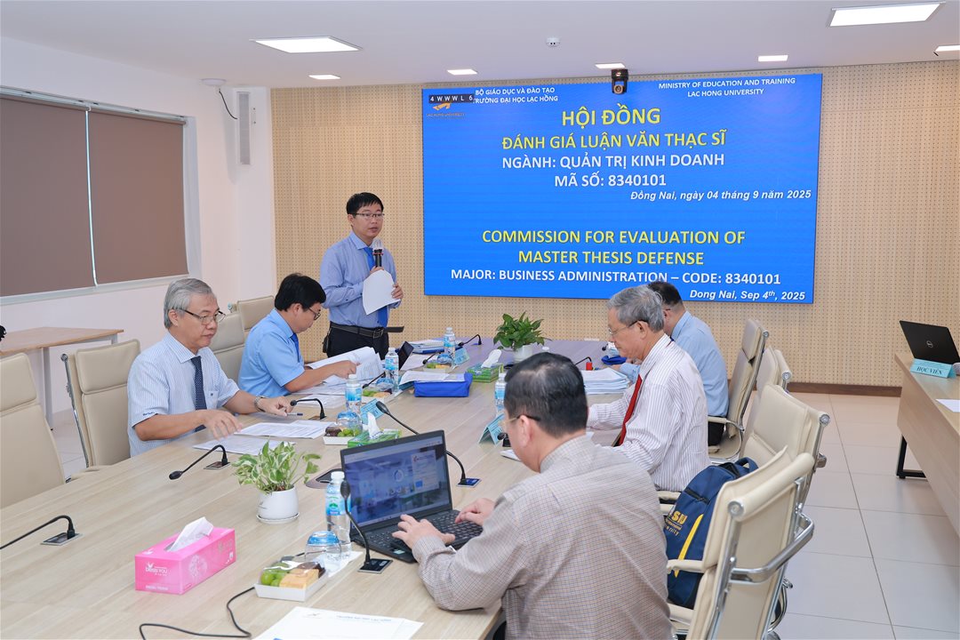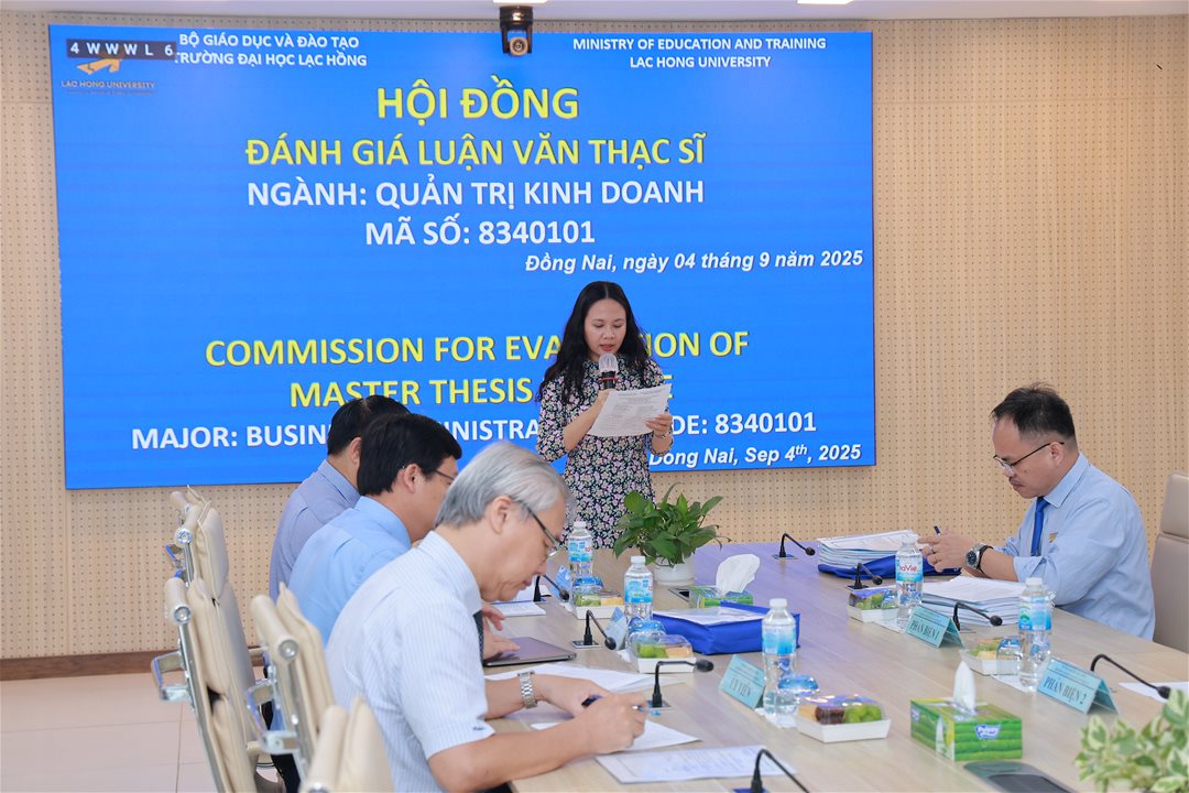Ngày 04 tháng 09 năm 2025, tại phòng họp cơ sở 1 của Trường Đại học Lạc Hồng (LHU), 13 học viên ngành Quản trị kinh doanh đã xuất sắc hoàn thành và bảo vệ luận văn thạc sĩ của mình. Buổi bảo vệ diễn ra trong không khí trang trọng và đầy tính học thuật, đánh dấu một bước ngoặt quan trọng trong hành trình học tập và nghiên cứu của các học viên.