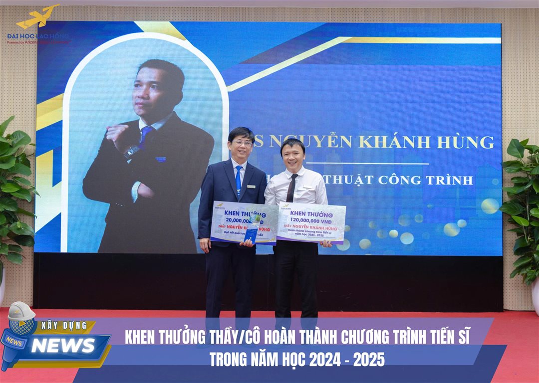 • Thầy Nguyễn Khánh Hùng – Trưởng khoa Kỹ thuật Công trình, được khen thưởng vì đã hoàn thành chương trình Tiến sĩ trong năm học 2024 – 2025.