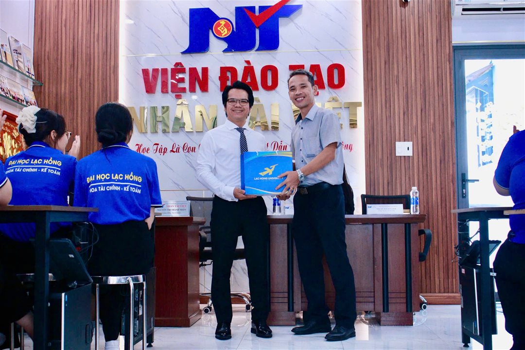 At the end of the visit, representatives of the Faculty of Finance and Accounting presented a souvenir gift and extended sincere thanks to the Board of Directors of Nhan Tai Viet Co., Ltd. for their cooperation and strong support in facilitating the Faculty’s training activities.