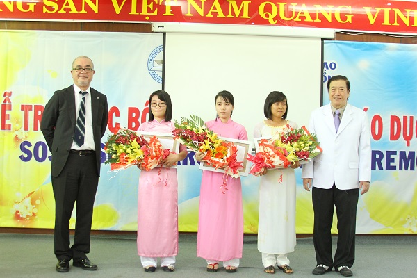 Three best students of English Language Faculty receives scholarship USD 9,500 each (from left side) Huynh Thi My Dung, Luong Ngoc Hoa and Ho Thi Huong