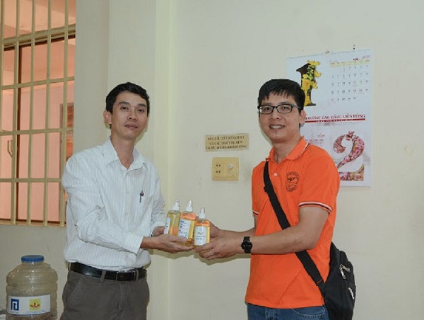Many schools in Dong Nai were presented hand sanitisers made in LHU