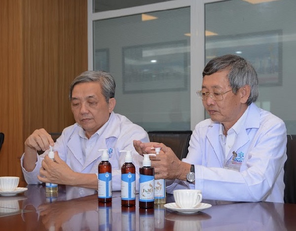 Doctors at Dong Nai General Hospital tried hand sanitizers given by LHU