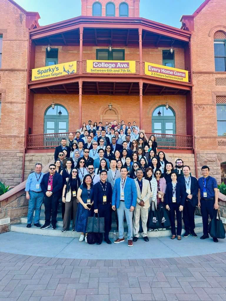 The delegation taking a commemorative photo in front of Old Main, the oldest building on the ASU Tempe campus, built in 1894.