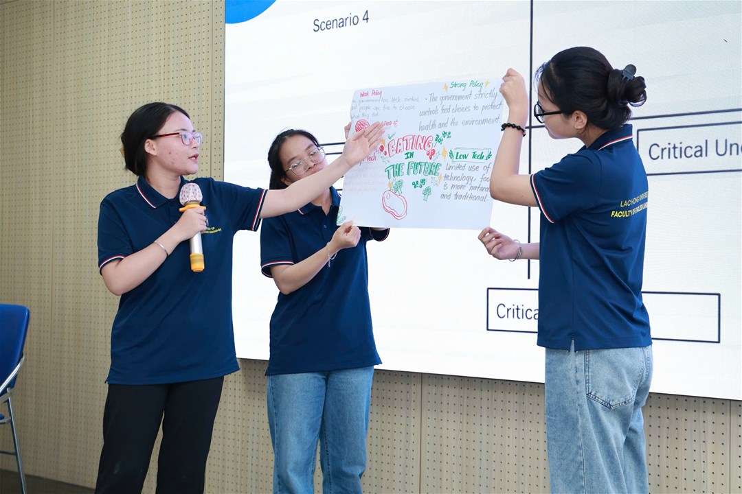 Thay vì lý thuyết thuần túy, sinh viên được trực tiếp tham gia mô hình Scenario Planning (Ma trận 2x2):