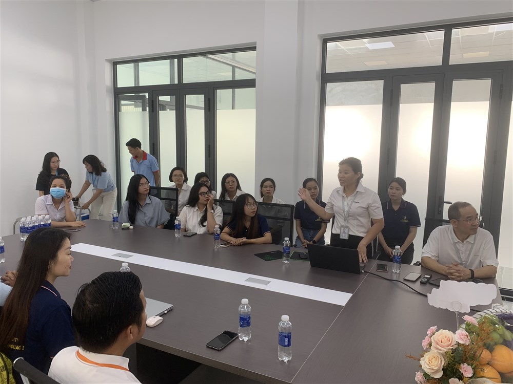 The students received detailed explanations of the entire manufacturing cycle—from raw material procurement and specialized color mixing to the intricate printing process and the final finished products. Furthermore, Ms. Hue and Mr. Yong addressed student inquiries and provided valuable information regarding internship opportunities and career prospects within the company.