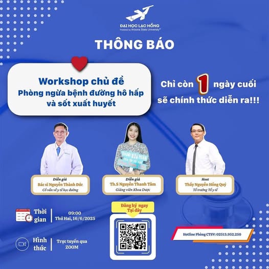 On June 16, 2025, Lac Hong University will host an online workshop on “Preventing Respiratory Diseases and Dengue Fever” via Zoom. This meaningful activity highlights the university’s commitment to community well-being, especially at a time when infectious diseases remain a major public concern.
